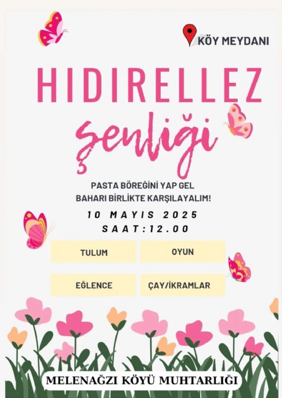 Doğal ve tabi güzellikleri ile bilinen, misafirperver ve hoşgörülü insanı ile örnek olarak gösterilen Melenağzı Tatil Köyü, 10 Mayıs Cumartesi günü baharın gelişini müjdeleyen "Hıdırellez Şenliği' ne ev sahipliği yapmaya hazırlanıyor.