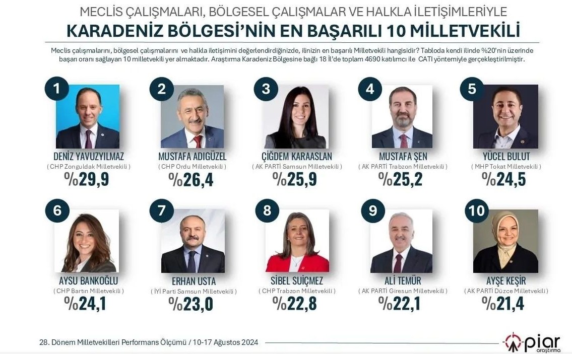Bu rapora göre, en başarılı milletvekilleri arasında Karadeniz bölgesi milletvekilleri arasında komşumu ilimiz Zonguldak’ın CHP’li milletvekili Deniz Yavuzyılmaz listenin zirvesinde yer aldı.